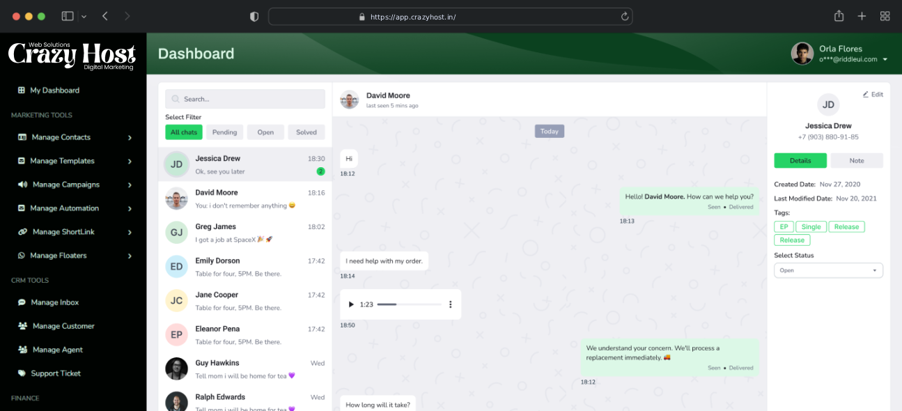 Convert contacts into loyal customers with detailed profiles, history, and interaction tracking. Use filters and custom fields to personalize your communication strategy.